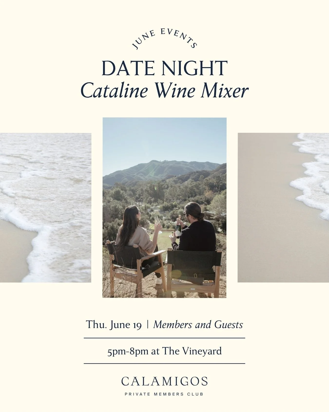 Join us for Date Night: Catalina Wine Mixer, an enchanting evening exclusively for our private members. Sip curated wines and enjoy artisanal bites in The Vineyard as the golden hour sets the scene. Bask in breathtaking sunset views and warm coastal breezes—an unforgettable night of romance and refined indulgence.